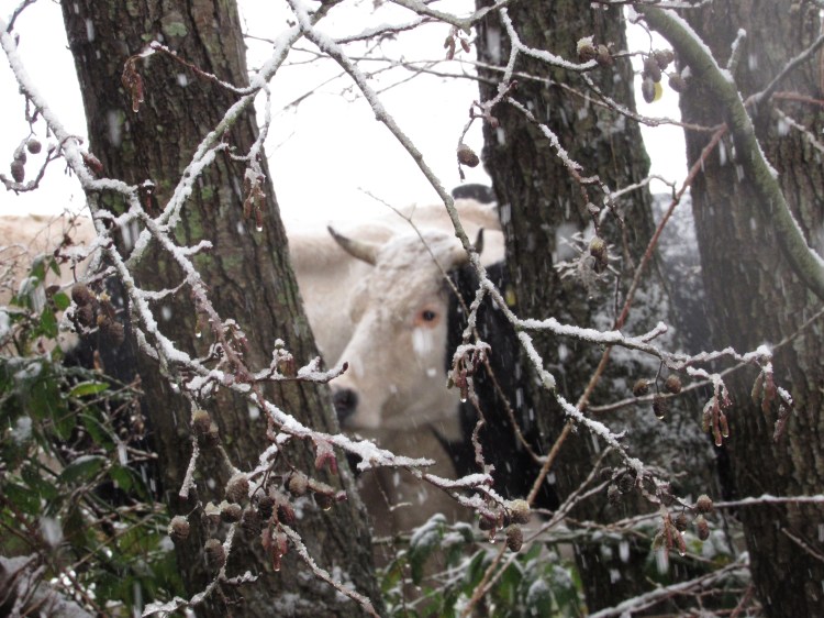 24-12-25 Dit pasgeboren kalf groet de kerst-vierders. Boeren die koeien met kalf in de weilanden houden is een unieke soort aan het worden, kijk dus maar goed. Op deze plek kunnen ze buiten weiden en bij de moeder zijn. Vrolijke kerstdagen en gezond nieuw jaar, met genoeg plek en liefdevolle ontvangst van hen die extensief boeren!