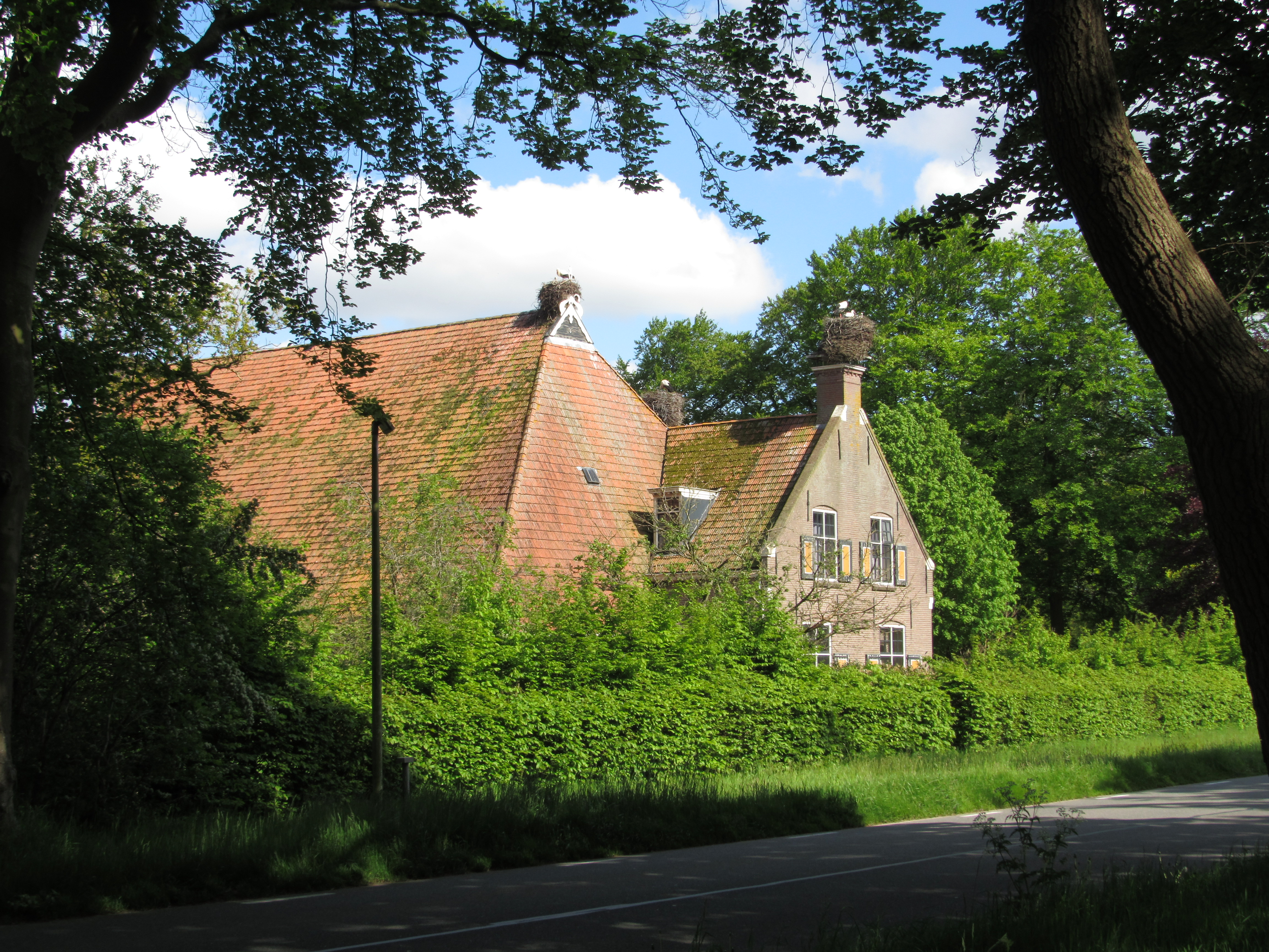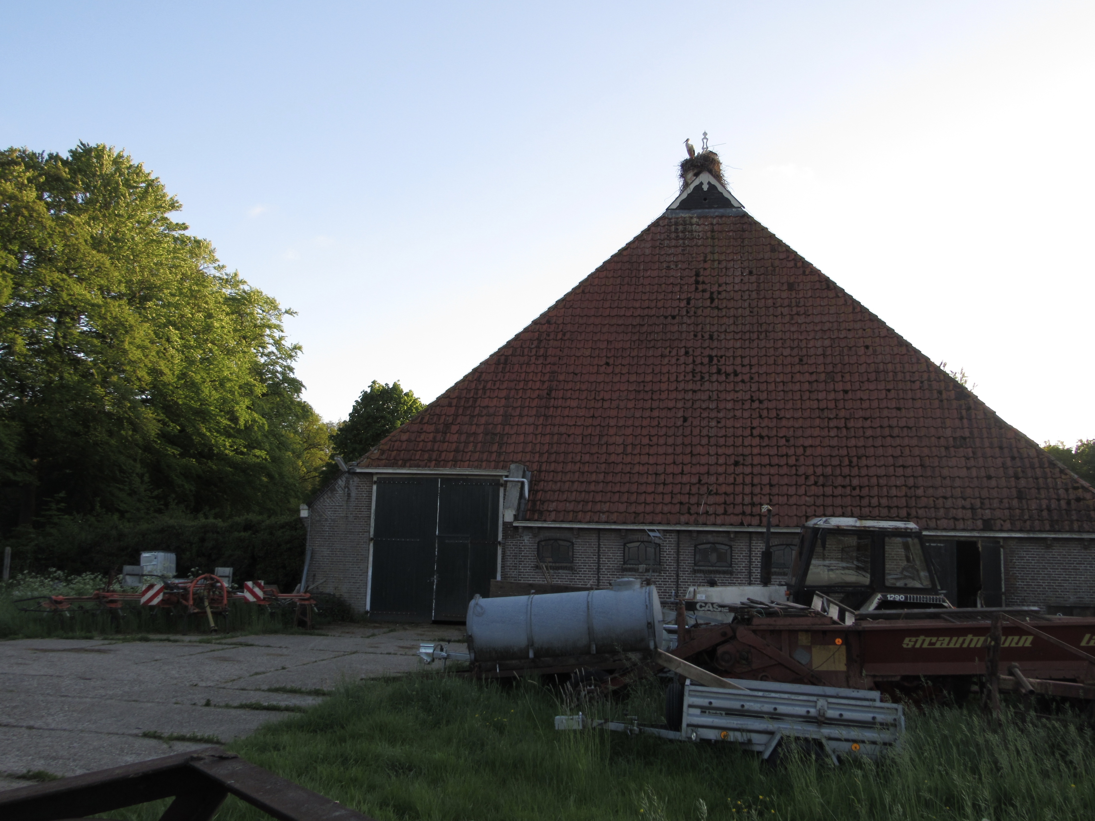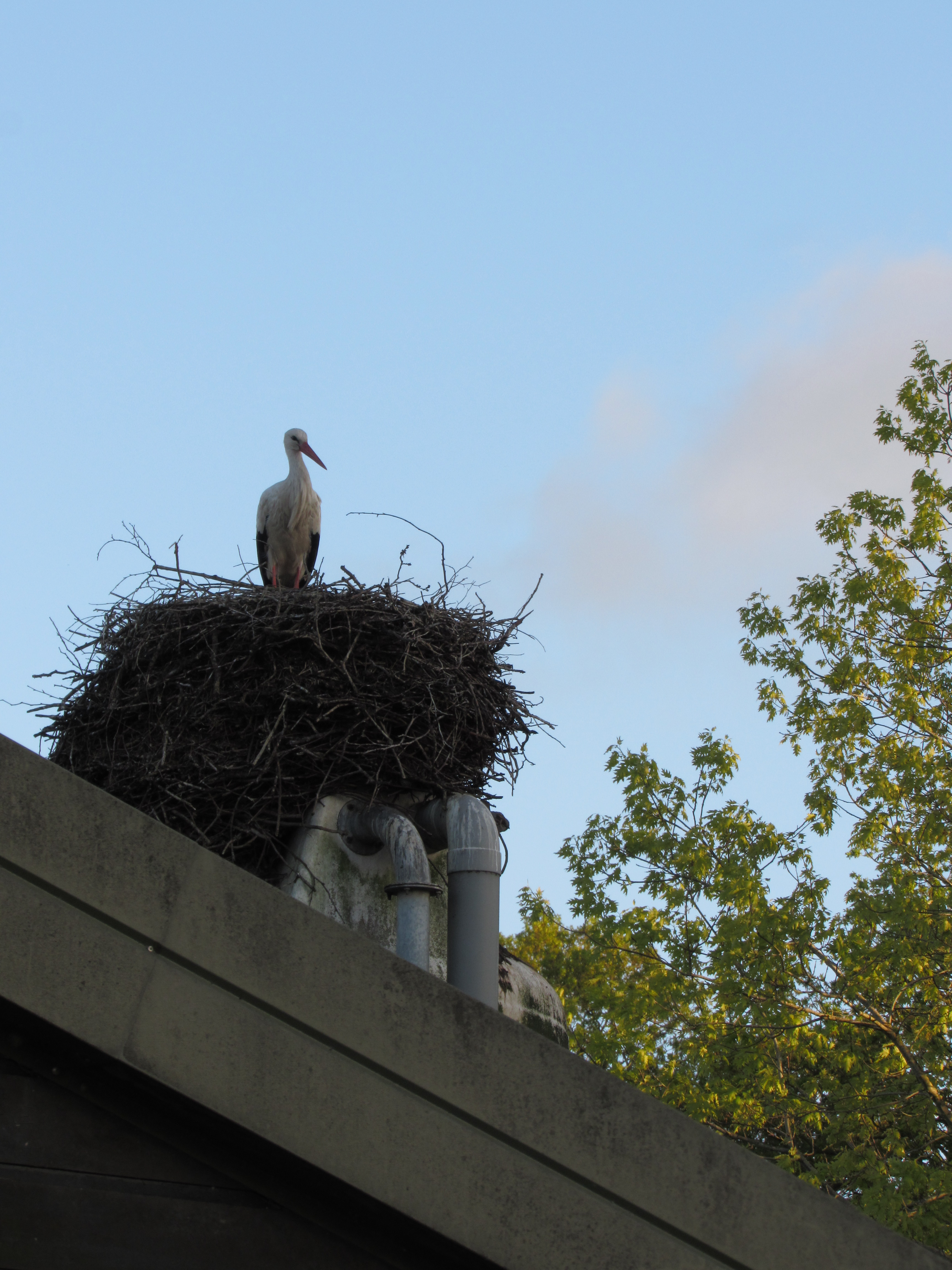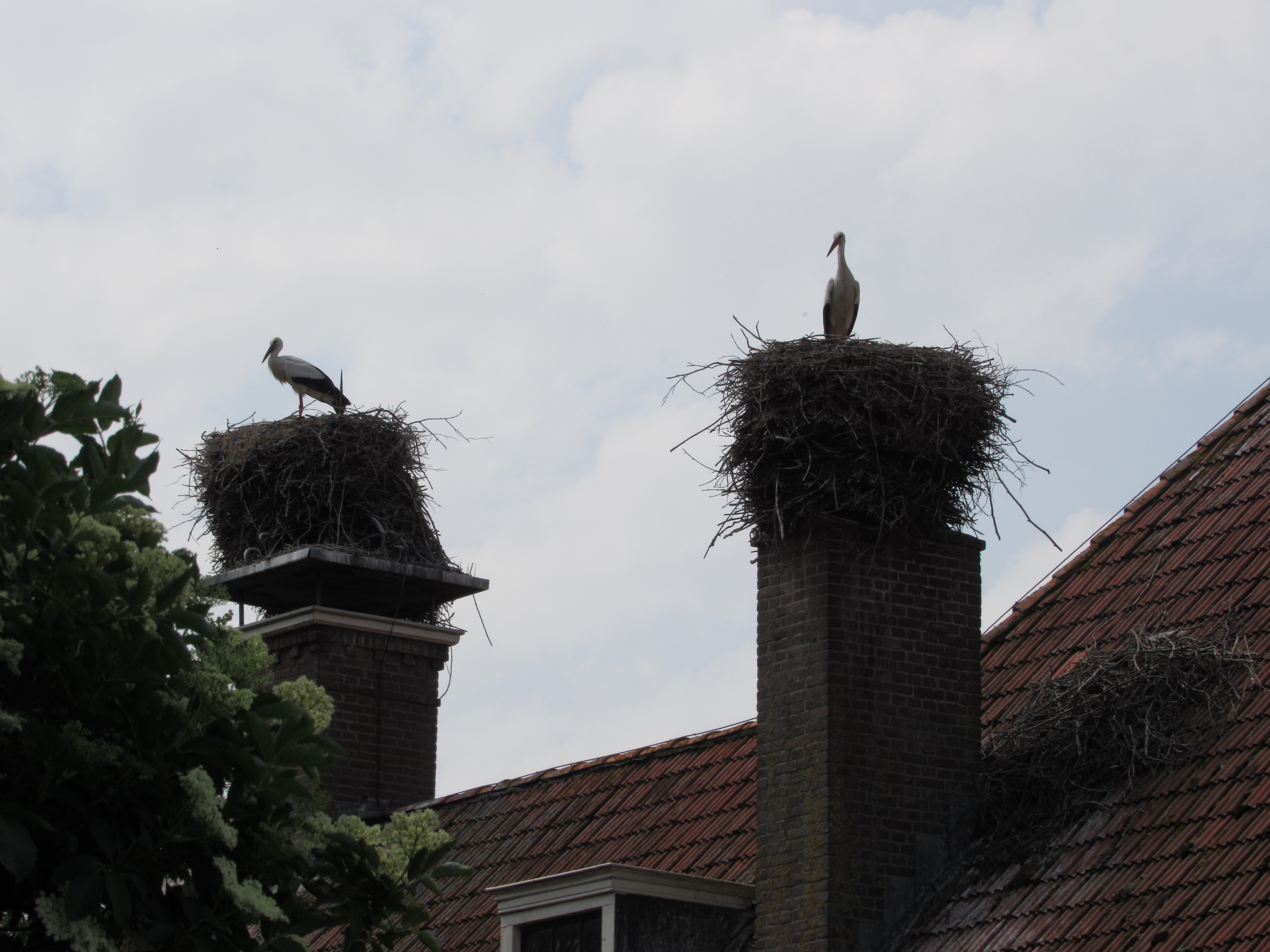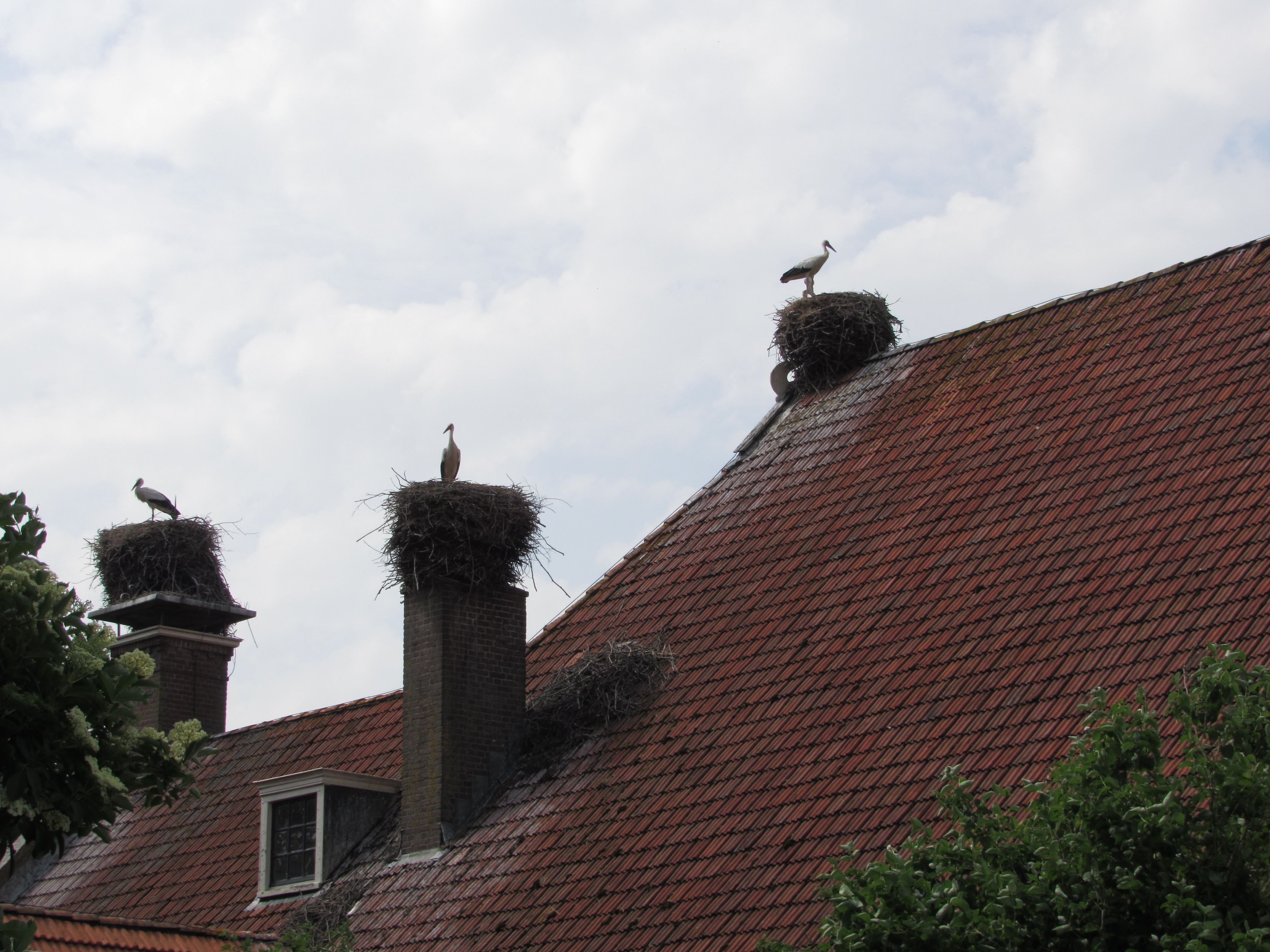 Op 18 juni 2021, een prachtige zonnige, niet te hete dag, zijn de mensen van it Eibertshiem geweest met een grote kraan om de ooievaarsjongen te ringen. In het nest op de voorste schoorsteen van het huis zitten drie jongen, die al konden vliegen.