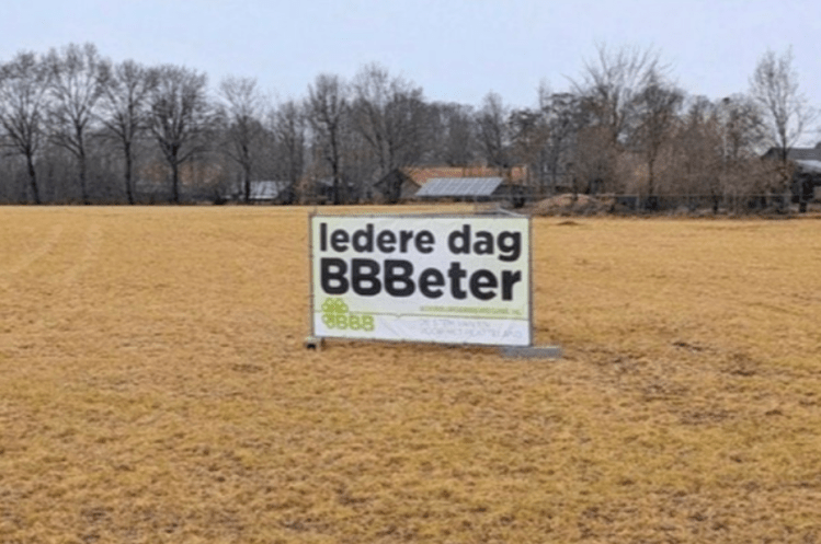 Op de foto van het stuk land met het BBB-bord is het land geel. In plaats van de boel doodspuiten, waardoor het geel kleurt, en daarna snel onderspitten zodat het niet opvalt dat er met gif is gespoten, zou het mooi zijn als we weer de kleur van de aarde zien, zoals die is: het bruin van aardiger voor de aarde en haar bewoners. Ik kreeg commentaar op de foto, die zou zijn gemanipuleerd, en “het onderspitten hoort nu eenmaal bij groenbemesters”. Het is bekend dat mensen liever geen commentaar op geelgespoten land krijgen en het daarom snel onderspitten. Zelfs al zou deze foto bewerkt zijn, dan nog zie ik veel gele landerijen om me heen, zonder dat BBBord.