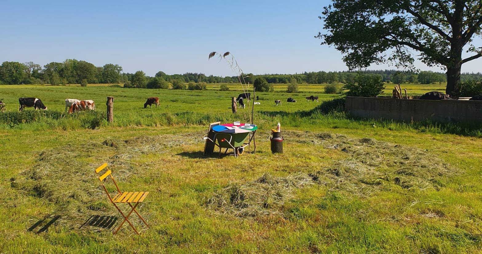 Wij spraken hen toe, waarna we gezamenlijk wandelden door de natuurweiden rondom de boerderij en koffie met elkaar dronken. In een uur kun je veel indrukken opdoen. Rondom de plek waar we de leden toespraken kon je de koeien zien rondlopen in het coulissenlandschap met het bos op de achtergrond.